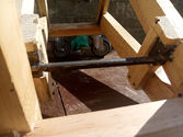 The wood was obtained from a tree that he and his younger brothers cut down and hand carried to the local sawmill. The wheels and axle parts came from an old broken wheelchair. Since a metal rod of the proper diameter to make through axle was not available, he had the two old wheelchair axles welded at the local market to a piece of rebar to create a single axle.